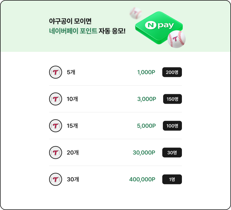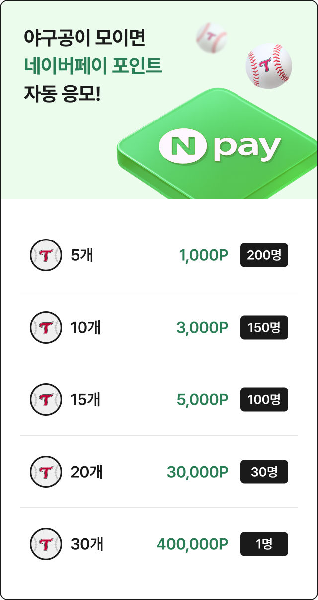 야구공이 모이면 네이버페이 포인트 자동 응모!
