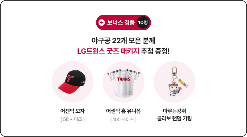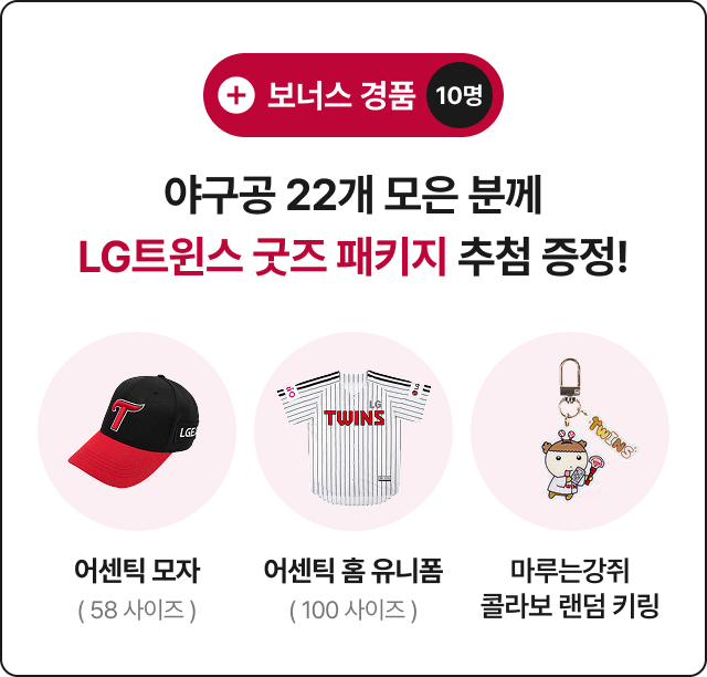 보너스 경품 10명! 야구공 22개 모은 분께 LG트윈스 굿즈 패키지 추첨 증정!