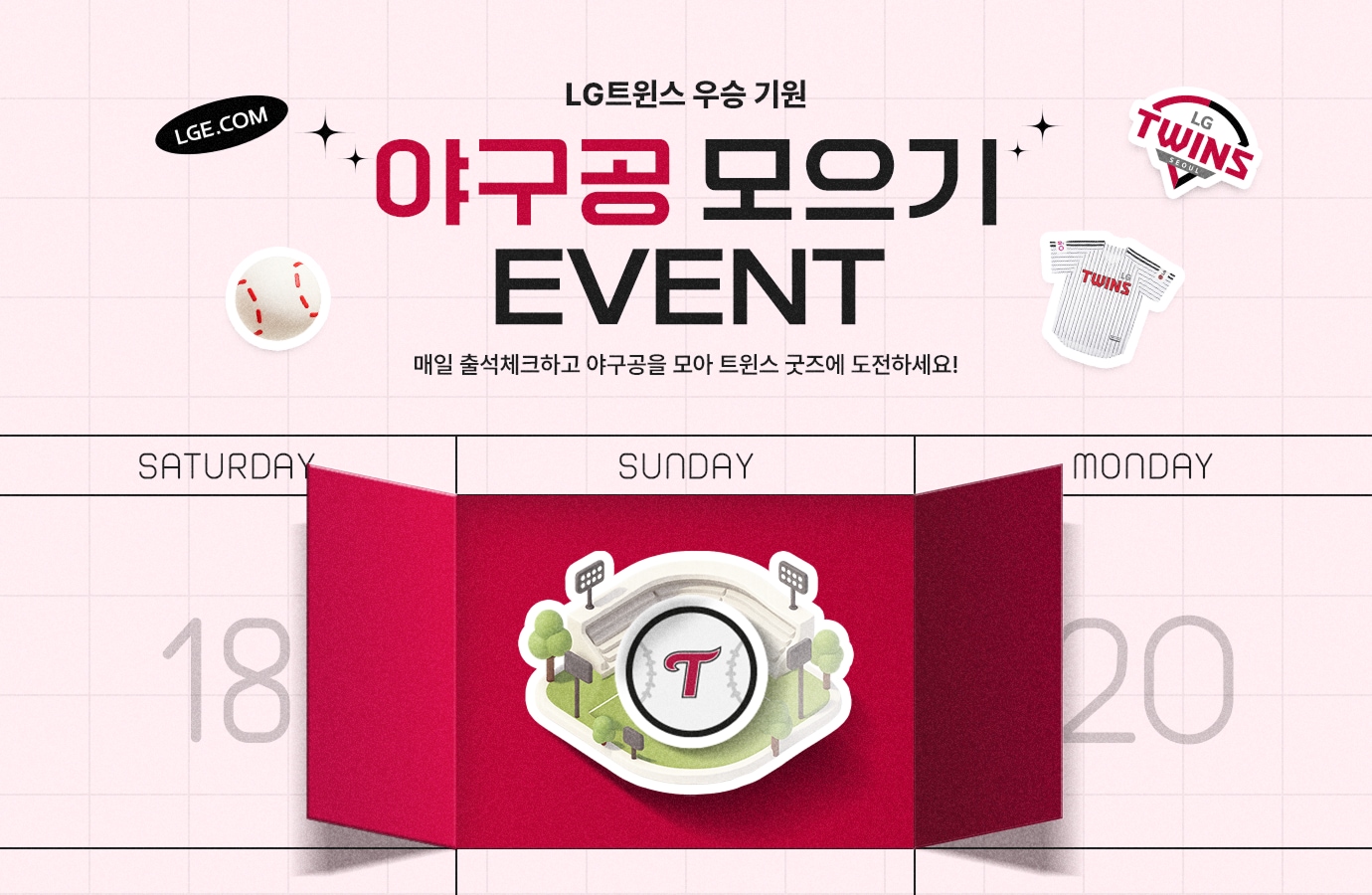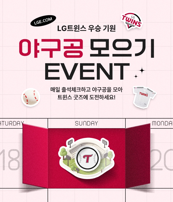 매일 출석체크하고 야구공을 모아 트윈스 굿즈에 도전하세요!