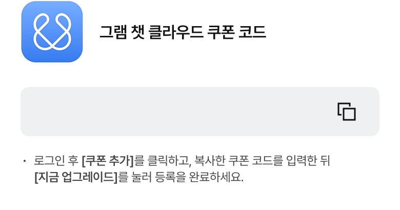 - 2. 쿠폰 코드 입력 후 [지금 업그레이드] 클릭하여 등록