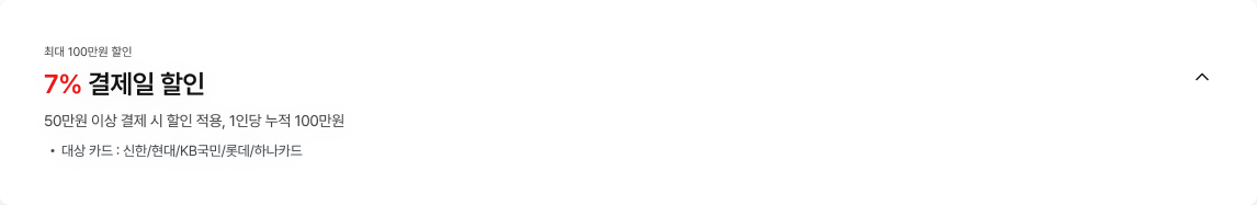 - 50만원 이상 결제 시 할인 적용, 1인당 누적 100만원