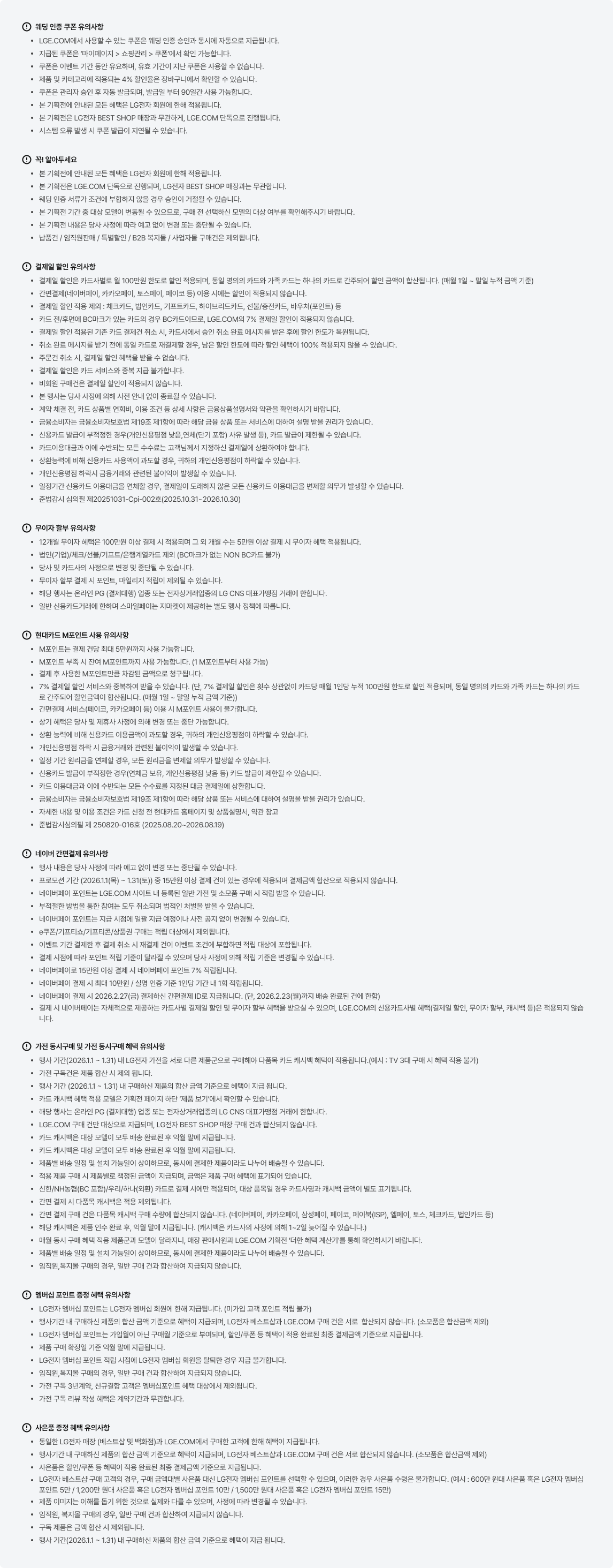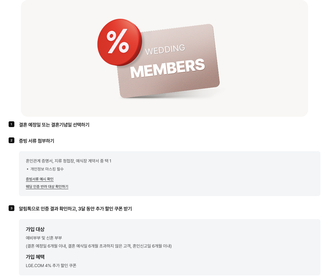 - 플러스 서비스 미이용 시 : LGE.COM 기본 행사 혜택 + 3% 포인트 추가 적립