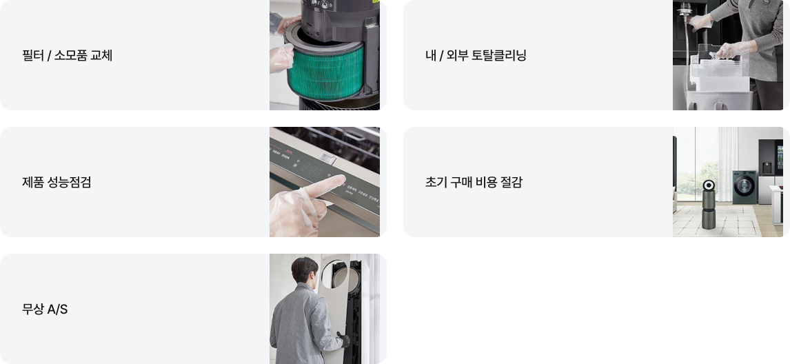 제품의 성능을 오래 유지하고 꺠끗하게 사용할 수 있도록 교체 주기에 따른 소모품 교체부터 혼자서