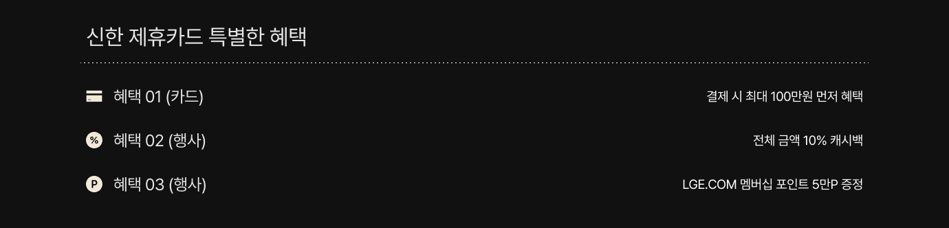 - 신한카드와 LG전자 내부 사정에 따라 사전 고지 없이 이벤트가 중단 및 변경될 수 있으며 혜택 지급 일자는 변경될 수 있습니다.