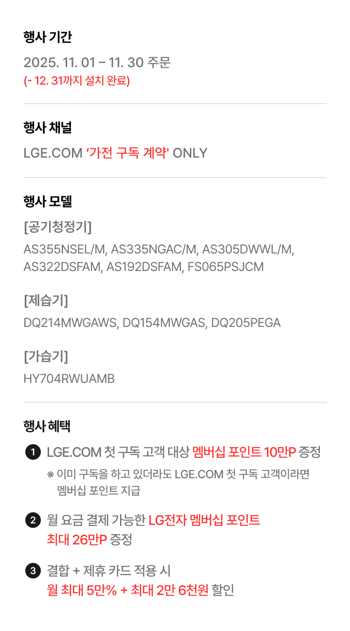 - 혜택 1 행사 모델 구독 시 멤버십 250,000P 증정