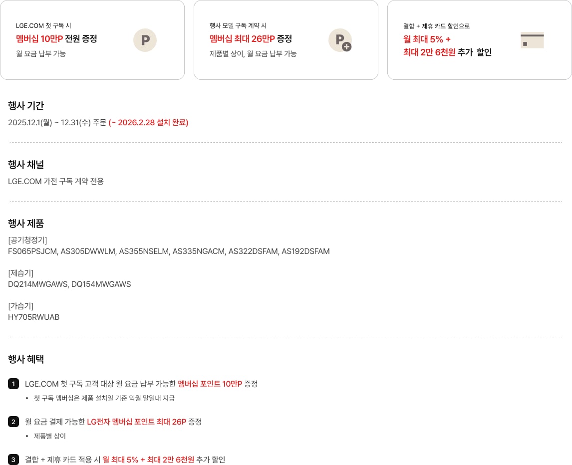 각 제품별 최대 월 3% 할인가전 구독 제품 보유 고객이 신규 구독 시