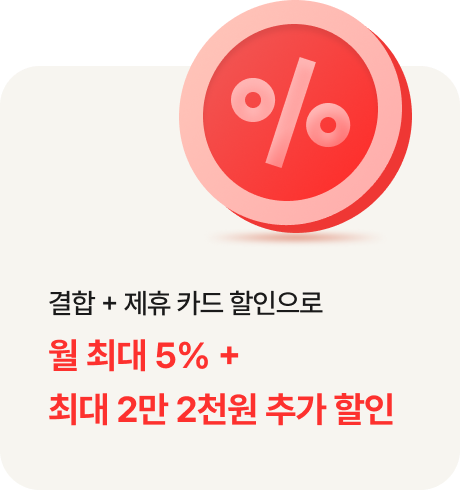 * 제휴카드 할인은 롯데카드 월 사용 실적 160만원 충족 시이며, 카드사 별 혜택 금액이 상이합니다.