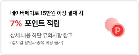 네이버페이로 15만원 이상 결제 시 7% 포인트 적립 상세 내용 하단 유의사항 참고 (결제일 할인과 중복 적용 불가)