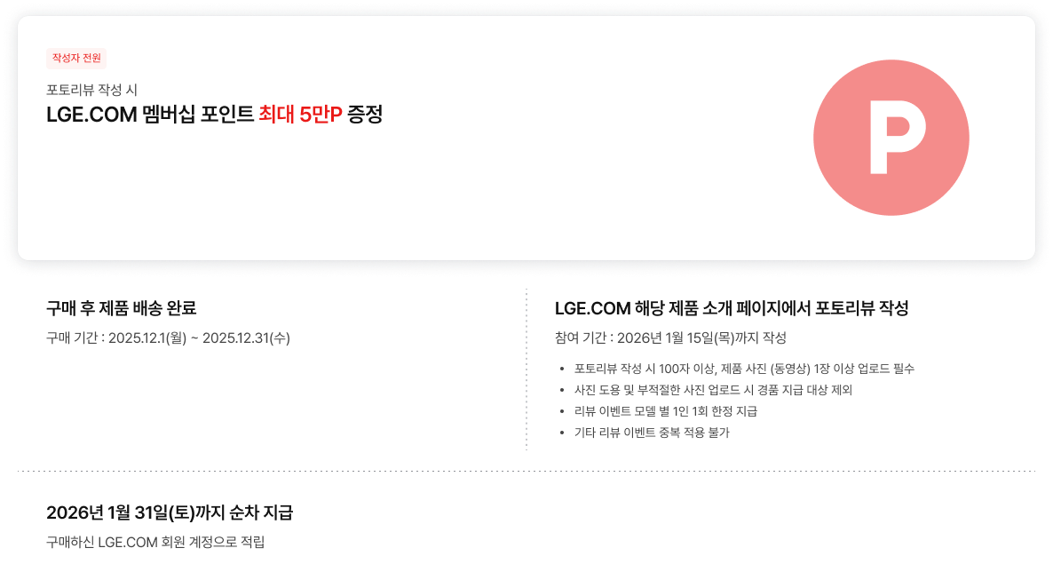 구매 후 포토/동영상과 함께 생생한 리뷰를 남겨주시면 멤버십 포인트를 드려요