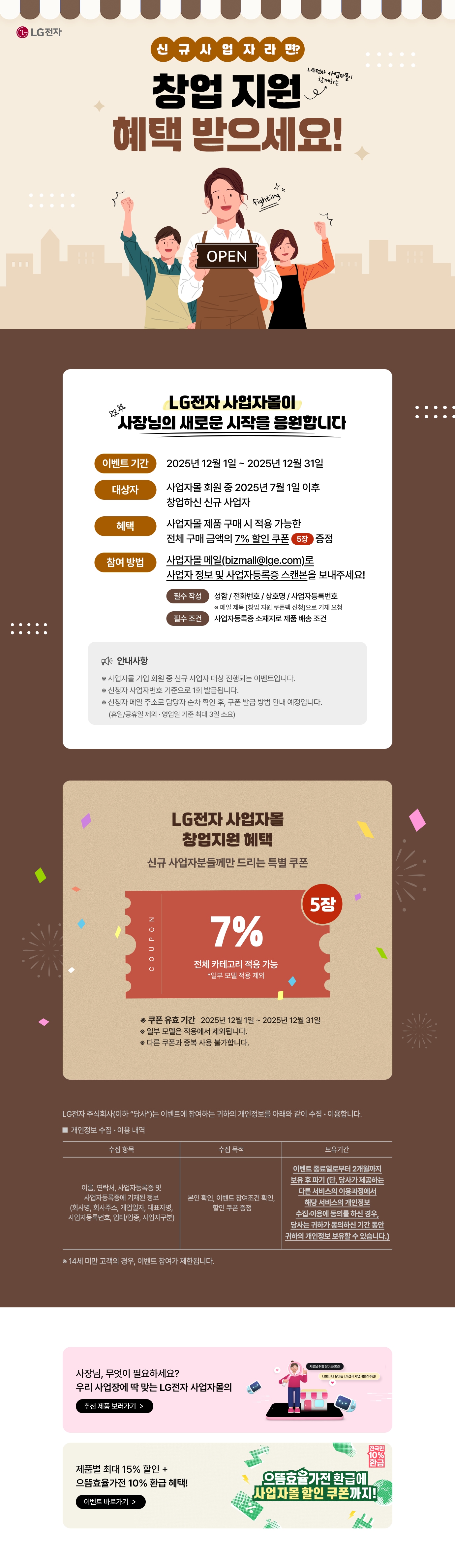 LG전자 사업자몰이 사업자님들의 새로운 시작을 응원합니다