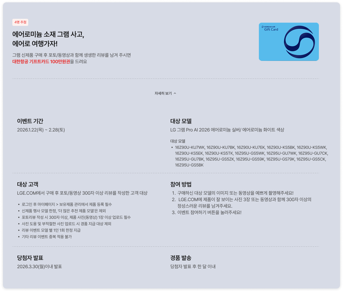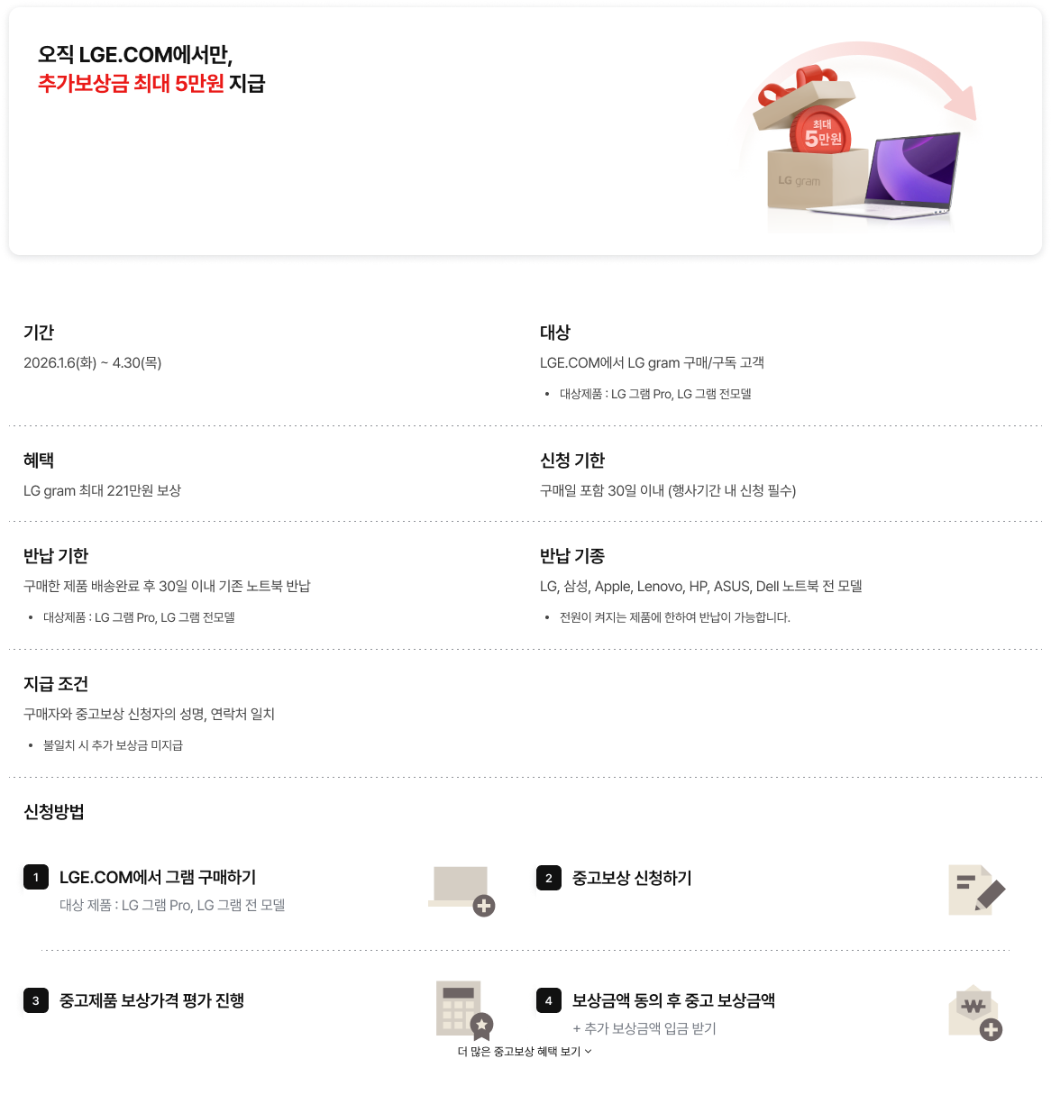 오직 LGE.COM에서만, 추가 보상금 최대 5만원 지급 이벤트