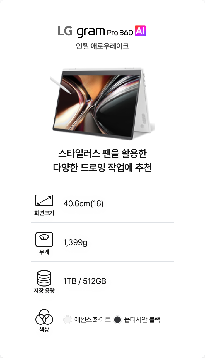 대상 제품: LG 그램 Pro, LG 그램 전 모델. 노트북 모양의 아이콘이 함께 있음.