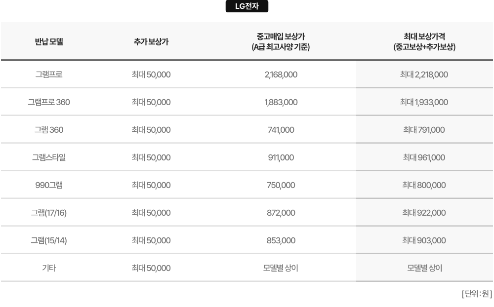 | 그램(15/14) | 최대 50,000 | 853,000 | 최대 903,000 |