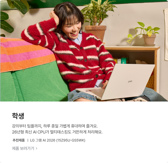 인터넷 익스플로러(IE)는 6월 15일 지원이 종료되어 LGE.COM 홈페이지는 엣지(Edge)와 크롬(Chrome) 브라우저에 최적화되어 있습니다.