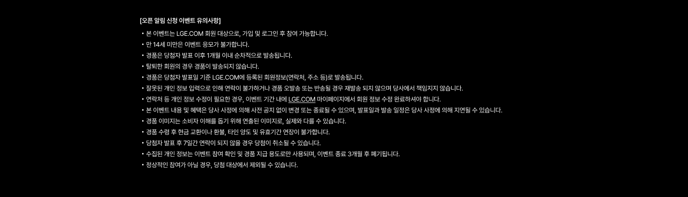 인터넷 익스플로러(IE)는 6월 15일 지원이 종료되어 LGE.COM 홈페이지는 엣지(Edge)와 크롬(Chrome) 브라우저에 최적화되어 있습니다.