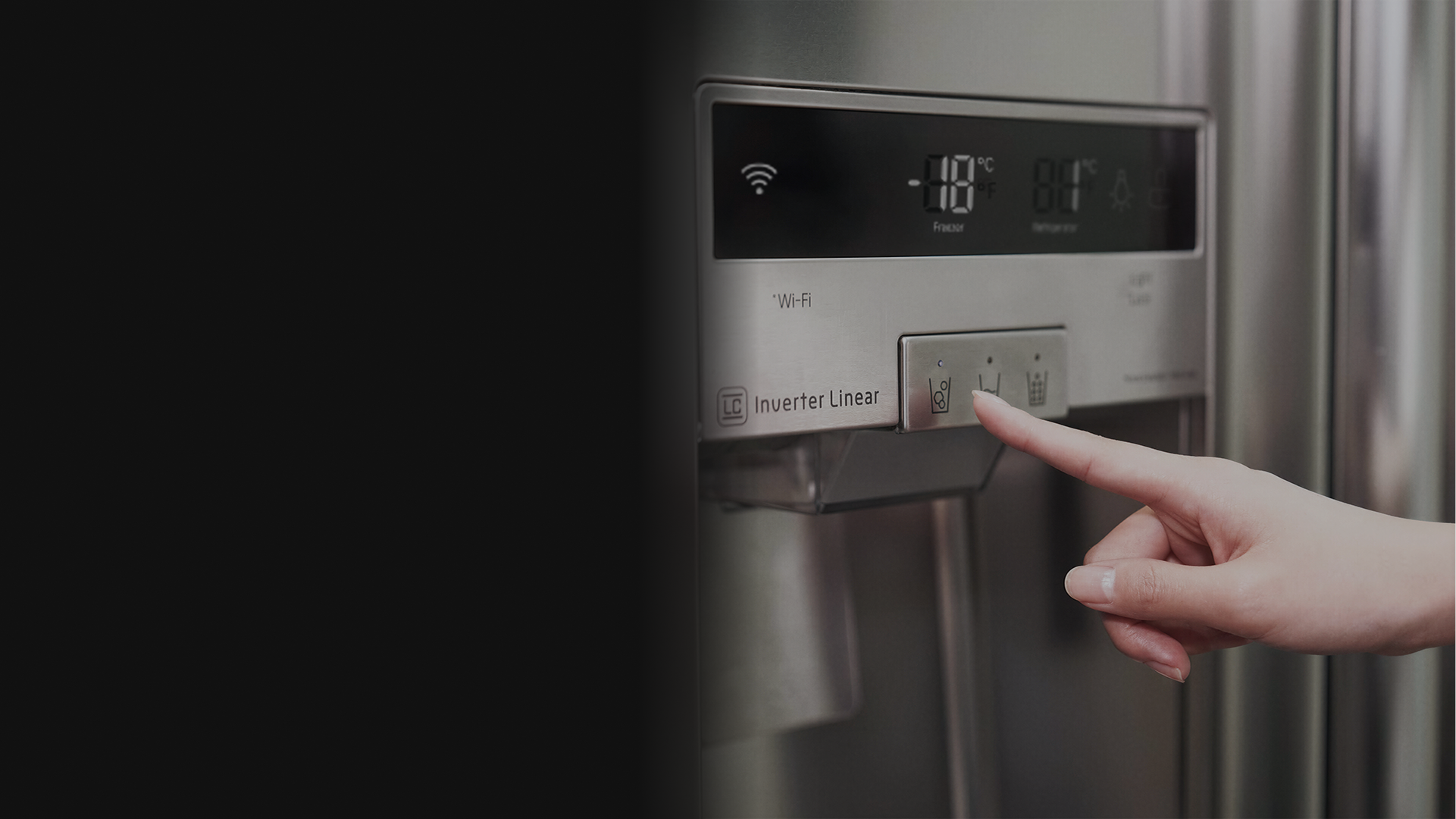 간편한 터치로 물과 얼음을 선택하고, 얼음의 모양까지