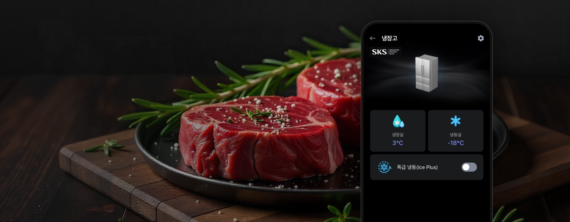 얼음정수기 냉장고 상태를 확인하고 제어할 수 있습니다.