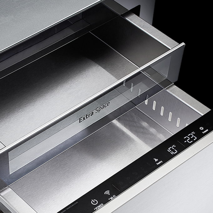 냉장고 내부 전면에 스테인리스가 적용돼