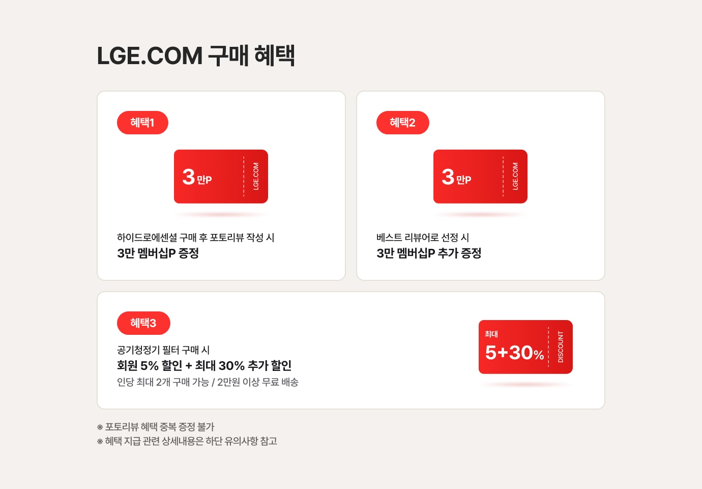 LG 하이드로에센셜 구매 후 포토리뷰 작성 시 3만 멤버십P 증정