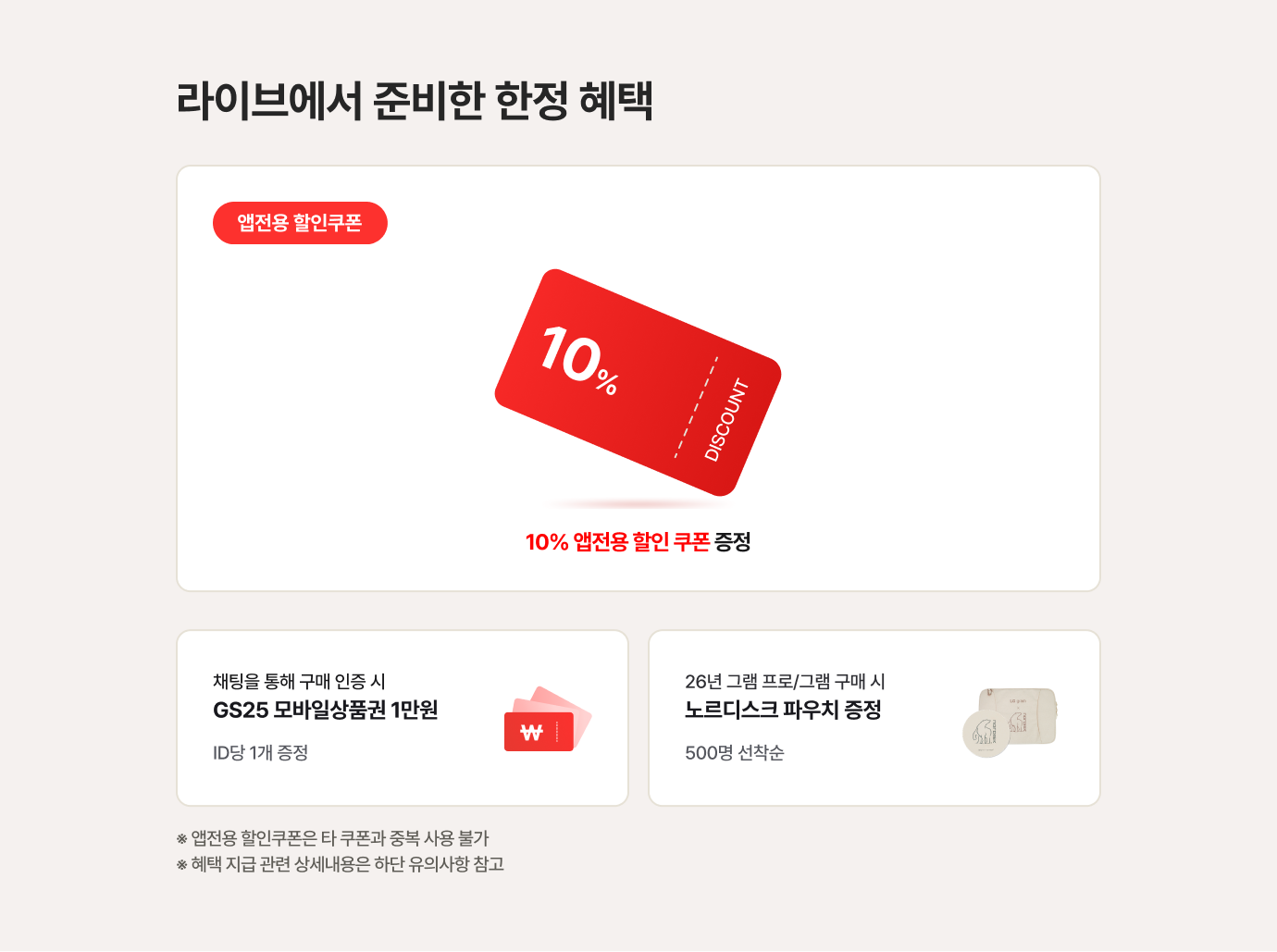 10% 앱전용 할인 쿠폰 증정우측에 원화 기호가 그려진 붉은색 모바일 상품권 아이콘이 있음.