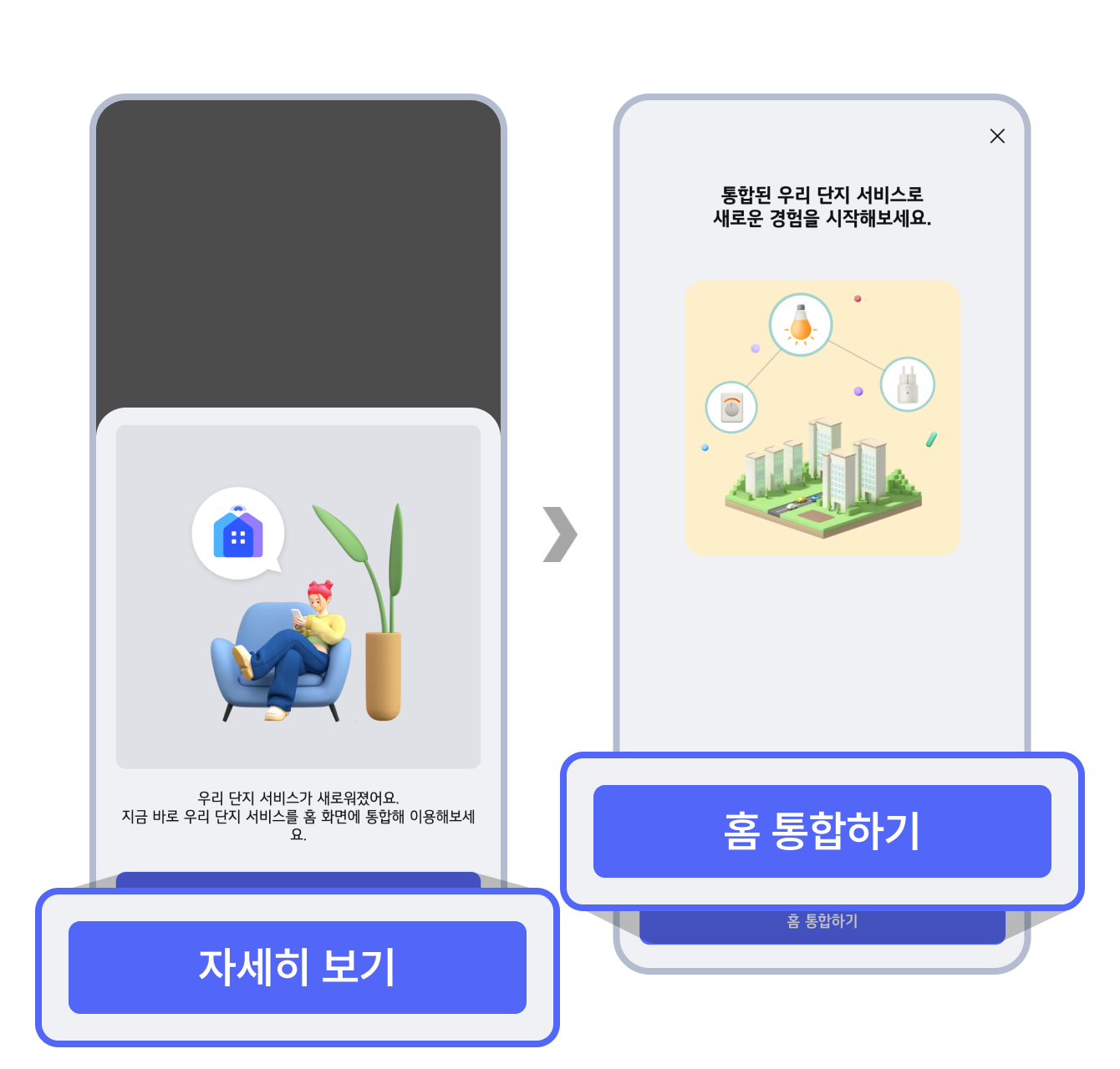 - 화면에 안내되는 ‘자세히 보기’를 통해 ‘홈 통합하기’를 진행하면, 간단한 절차를 통해 서비스 통합이 완료됩니다.