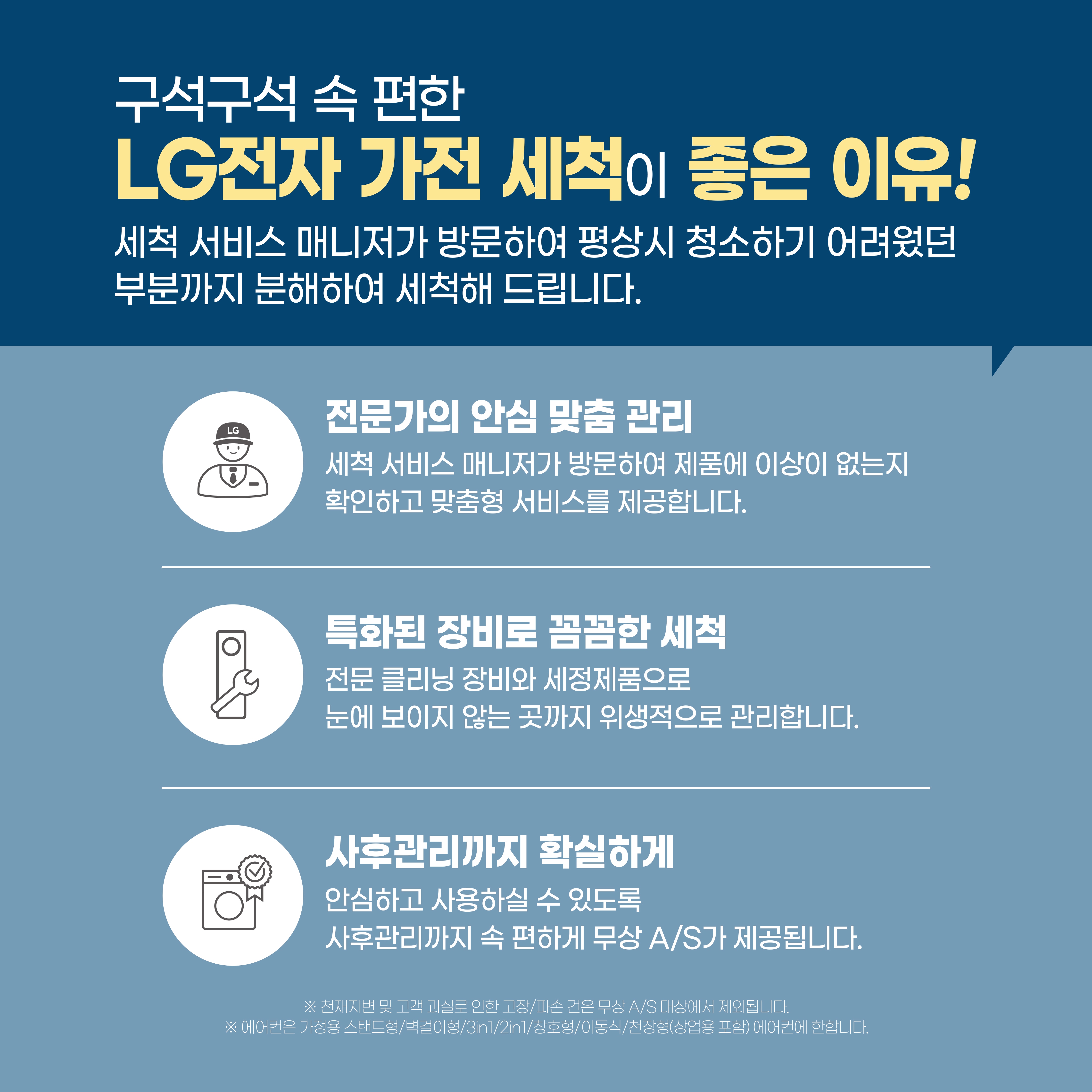 ※ 제품 및 모델 현장 상황에 따라 세척 서비스 범위가 달라질 수 있습니다.