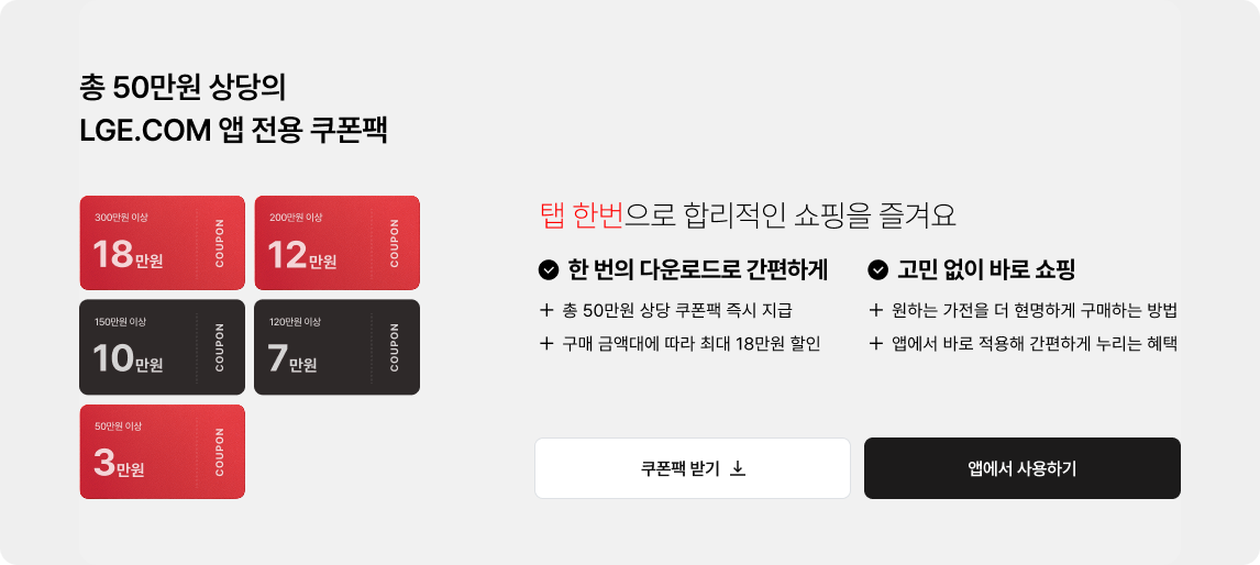 총 50만원 상당의 LGE.COM 앱 전용 쿠폰팩