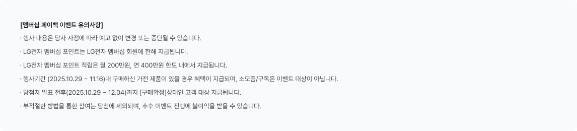- LG전자 멤버십 포인트는 LG전자 멤버십 회원에 한해 지급됩니다.