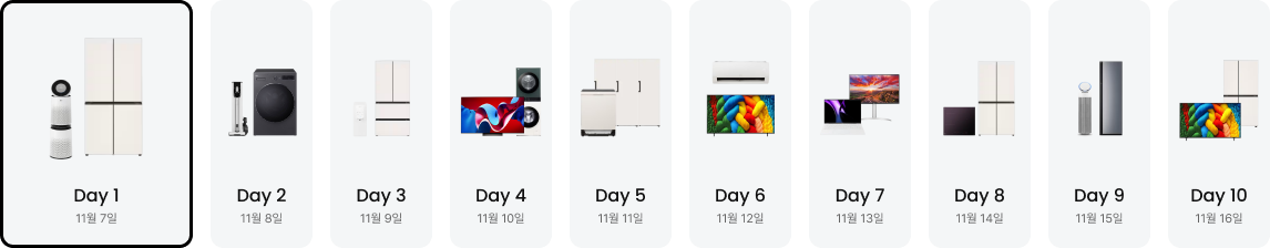 - 행사기간 (2025.10.29 ~ 11.16) 내 구매하신 가전 제품이 있을 경우 혜택이 지급되며, 소모품/구독은 이벤트 대상이 아닙니다.